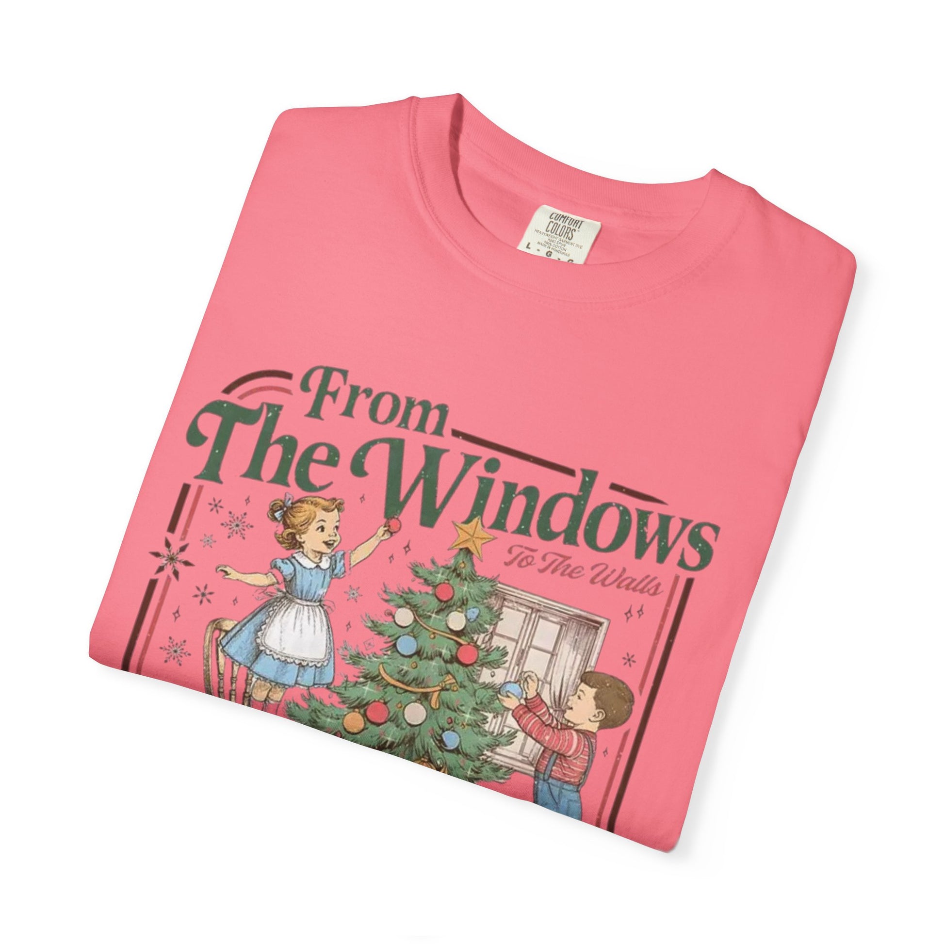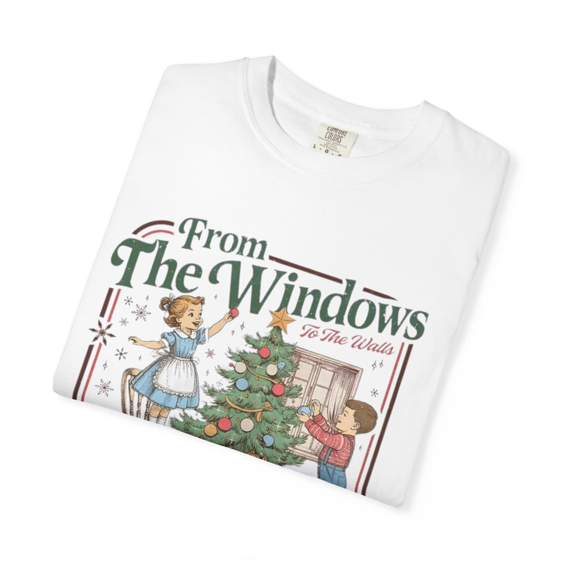 This premium garment-dyed tee delivers that lived-in, vintage look and soft, broken-in feel everyone loves from Comfort Colors. Featuring an adorable retro Christmas illustration of kids decorating a tree and the playful phrase: